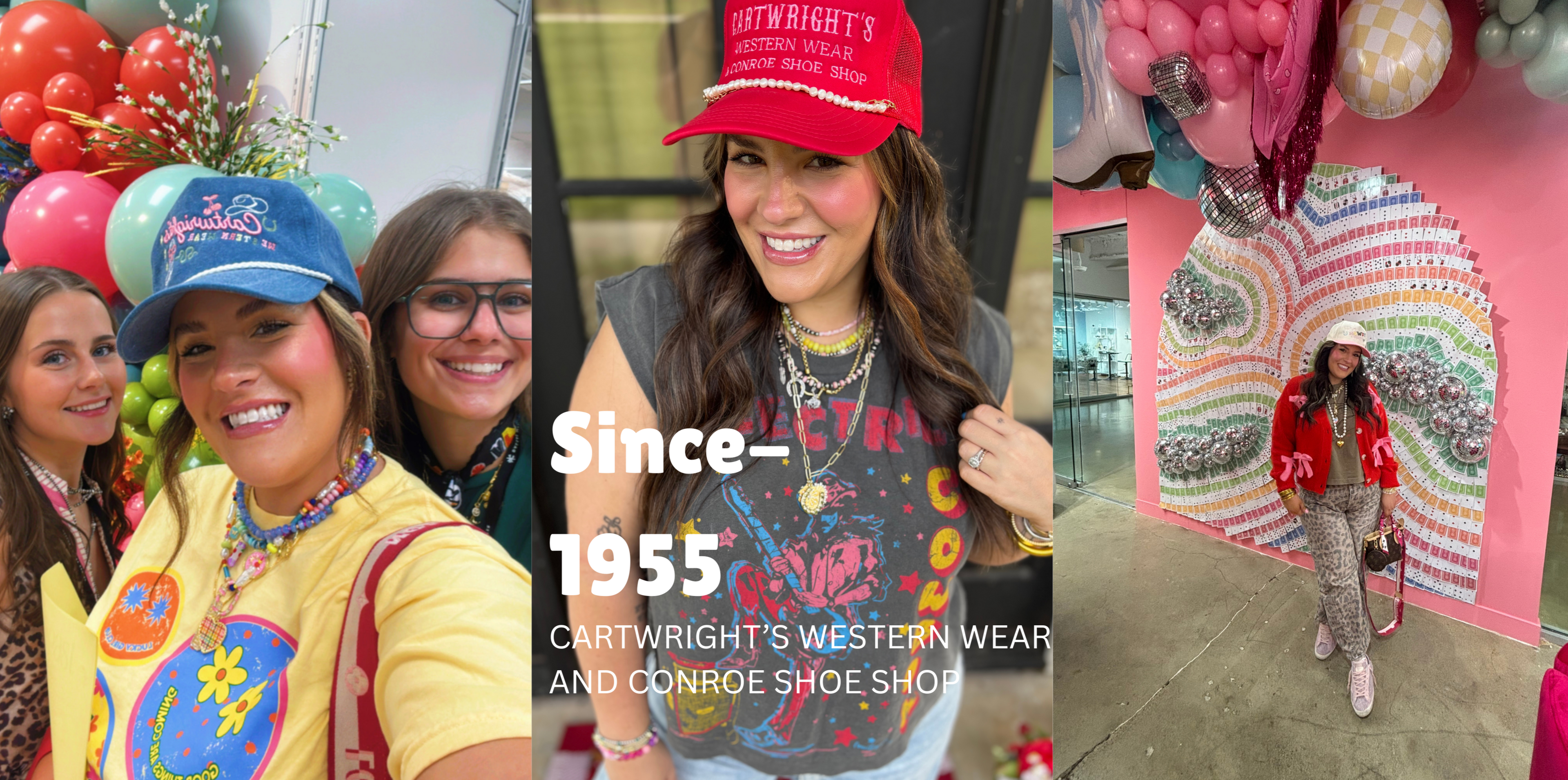 For over 70 years you have been able to find our store in the heart of Conroe, TX. Cartwright's Western Wear & Conroe Shoe Shop has been a family owned and operated business since 1955. We complete quality boot and shoe repair IN HOUSE! Additionally, we carry brands such as Cinch, Rock & Roll, Panhandle Slim, Burlebo, Properly Tied and so many more boutique items. Moore Jewlz, our custom charm bar, is also available in store. We believe in shopping small and supporting our community. Our goal is to make you feel and look your best while giving you a great experience along the way. Shop online or in store for the same great experience!