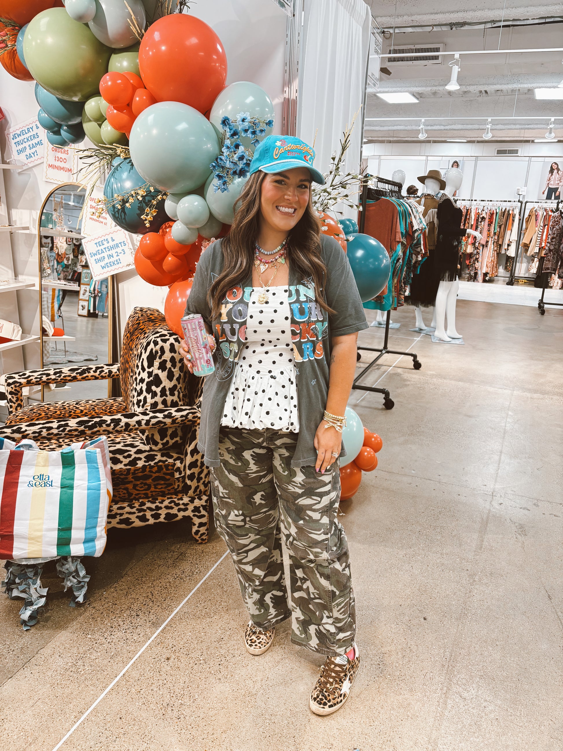 One of our best selling Etta original tee! Comfort colors unisex tee, Ashton styled hers with a middle cut and wore it over a cutie top for Dallas market! If you come in store she can cut your tee customized to how you want it. Unisex comfort colors tee.