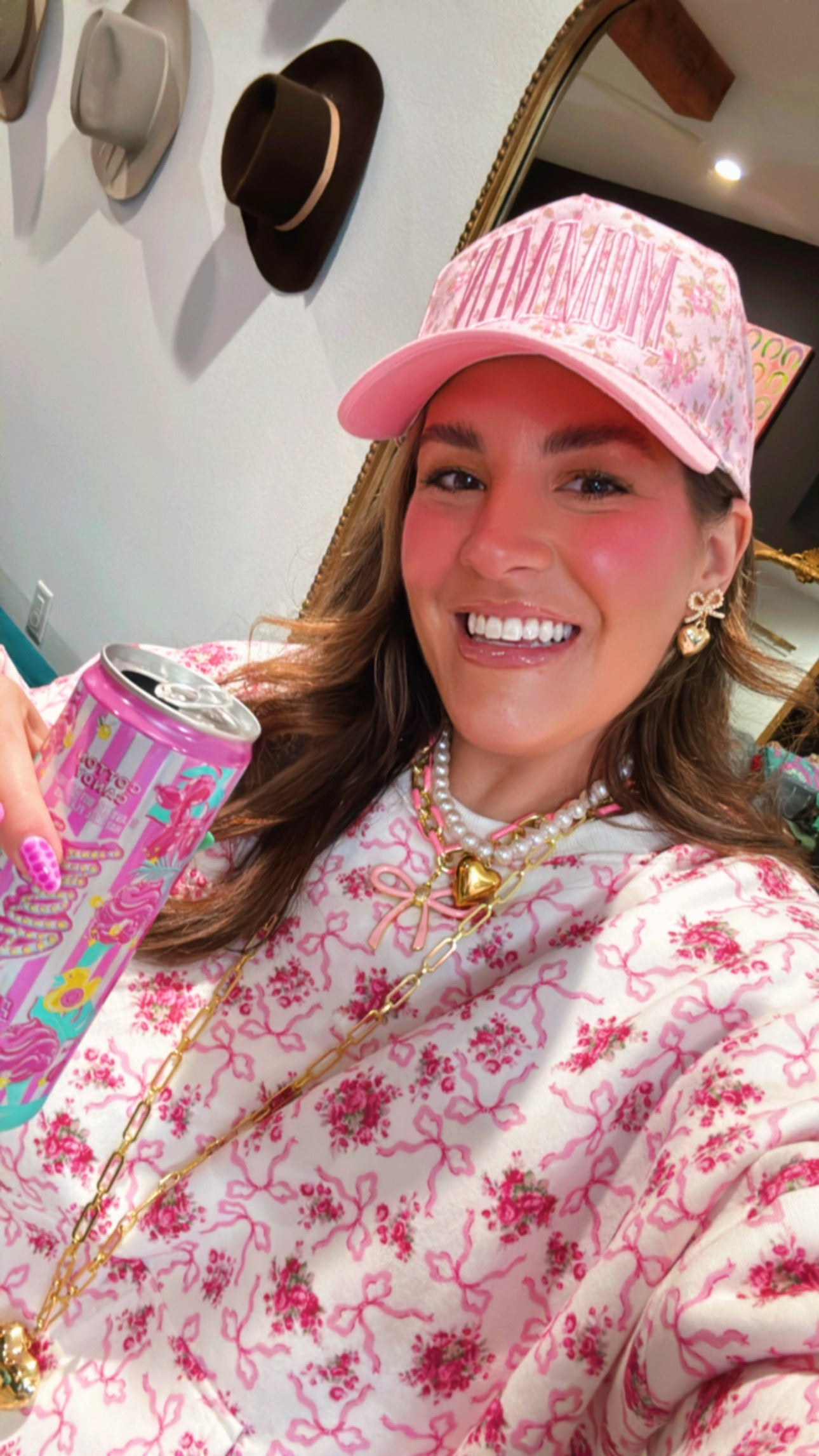 The cutest Love Shack Fancy inspired set! Ashton saw this at Dallas Market and died off over the pattern, fit, and colors!!! This is a sweatshirt with a pocket (like a hoodie on front of it) with stretchy shorts! Comfy and adorable! Giving all the love shack vibes pair it with your favorite pair of girly sneakers and a cutie trucker hat like Ashton did!!!